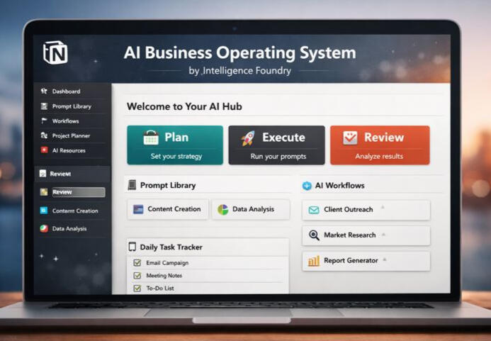 A structured Notion system that helps you organize, reuse, and apply AI prompts and workflows across real business tasks — planning, writing, analysis, and execution.